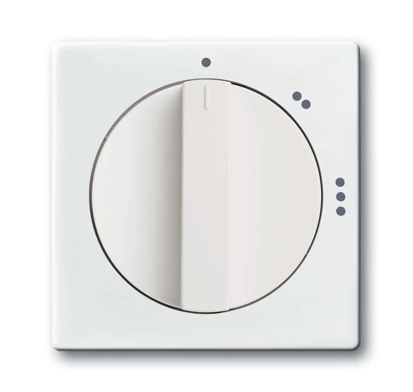 Busch-Jäger 2542 DR/02-84 future® linear, Sonstiges, Abdeckung für 3-Stufen-Drehschalter, 2710/1 U, studioweiß, Zentralscheibe mit Drehgriff, mit Aufdruck Als Abdeckung für UP-Dreistufen-Drehschalter. Ohne Nullstellung. Für Einsatz 2710/1 U.
