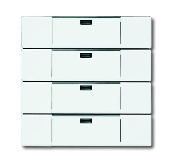 Busch-Jäger 6733-84 Busch-Funkcontrol, Bedienelemente future® linear, Wandsender WAVELINE 4-fach, studioweiß, Wandsender WaveLINE 4 Kanal Netzunabhängiger 4-fach Wandsender. Mit Beschriftungsfeld und Beschriftungsschild. Zum Schalten und Dimmen. Zur Jalousie- und zur Lichtszenensteuerung. Es können 4 Funkkanäle bedient oder bis zu 8 Lichtszenen aufgerufen werden. Für WaveLINE UP-Aktoren 6701-101, 6702, 6703, 6704 und 6705-101. Für LED-Anzeige WaveLINE 6730-xxx. Kompatibel zu WaveLINE Medienkonverter TP-RF 6770. Sendefrequenz: 868 MHz. Reichweite: ca. 100 m (Freifeld). Spannungsversorgung: Lithium-Knopfzelle Typ CR2032. Batterielebensdauer: typ. 5 Jahre, dadurch praktisch wartungsfrei. Automatische Überwachung der Batterielebensdauer. Inkl. Befestigungsplatte zur Montage auf glatten Wänden oder auf Schalterdosen. Bedienelemente: Tastkontakte links/rechts Anzeigeelemente: Statusanzeige der Sendestufe über LED Schutzart Gerät: IP 20 Temperaturbereich Gerät: -5 °C bis 45 °C Maße (H x B x T): 63 mm x 63 mm x 16 mm